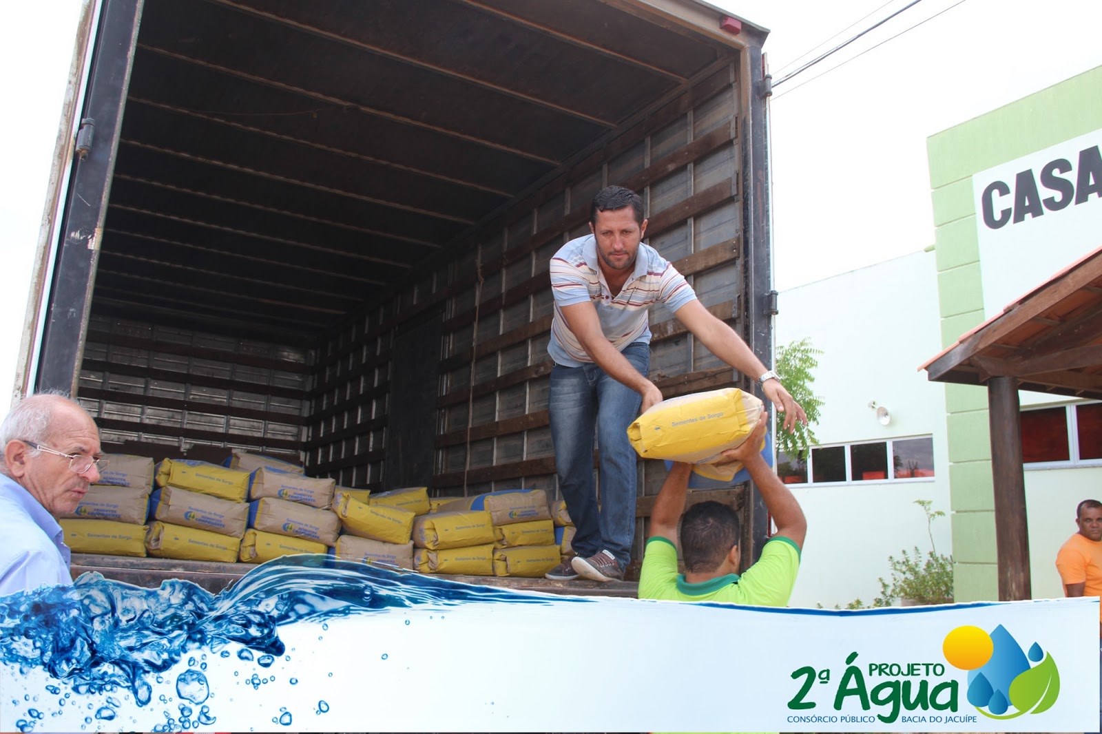 Durante os dias 21 e 22 de março o Consórcio Jacuípe entregou em 7 secretarias de agricultura um total de 10.000 Kg (dez mil quilos) de sementes de sorgo que serão destinadas para 1.000 (mil) famílias beneficiárias do Projeto 2ª Água.